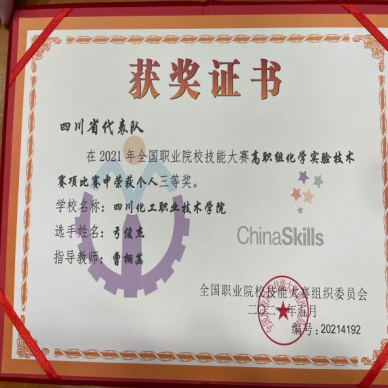 我校选手代表四川省荣获2021年全国职业院校“化学实验技术技能大赛”国赛三等奖