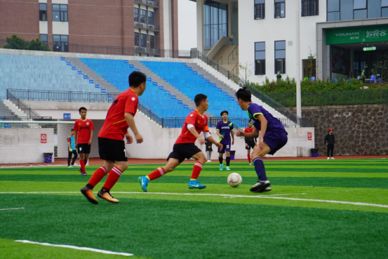 男足比赛,经济管理学院男队攻势猛烈,一度使药品与环境工程学院男队难以攻破防线,但药品与环境工程学院男足队员坚持不懈,顽强拼搏,越战越勇,冲破防线打进一球,顿时士气大涨。药品与环境工程学院的啦啦队积极呐喊助威。最终,药品与环境工程学院的男队4:1、女队4:0取得四川化工职业技术学院2022年“化院杯”足球比赛第三名。