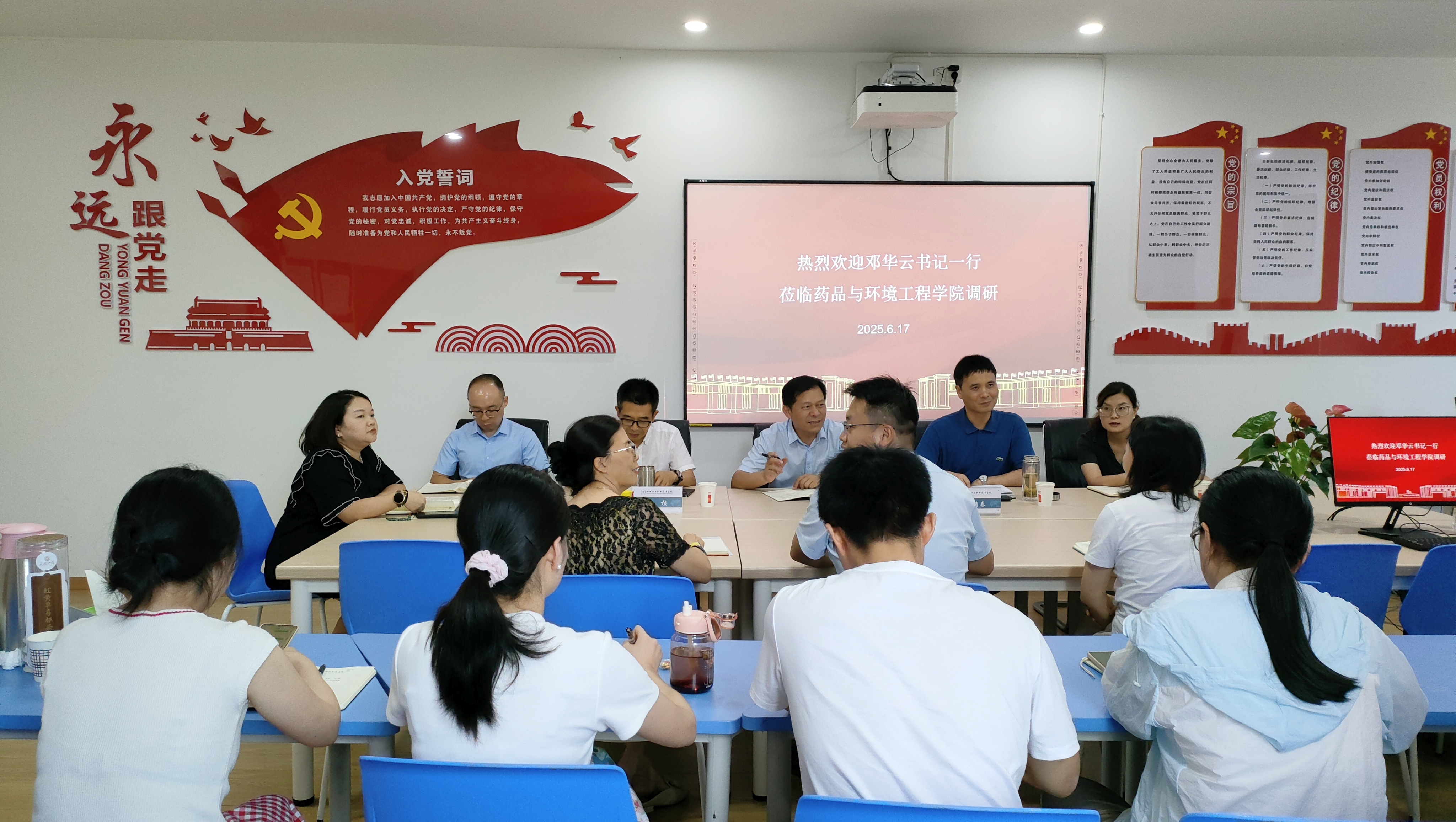 6月17日,学校党委书记邓华云一行莅临药品与环境工程学院开展专题调研,通过听取汇报、现场交流等方式,深入了解学院建设现状,聚焦发展难题,倾听一线诉求,为学院高质量发展精准开方。学校党政办公室、组织部、人事处等职能部门负责人、学院领导班子及教师代表参加调研。