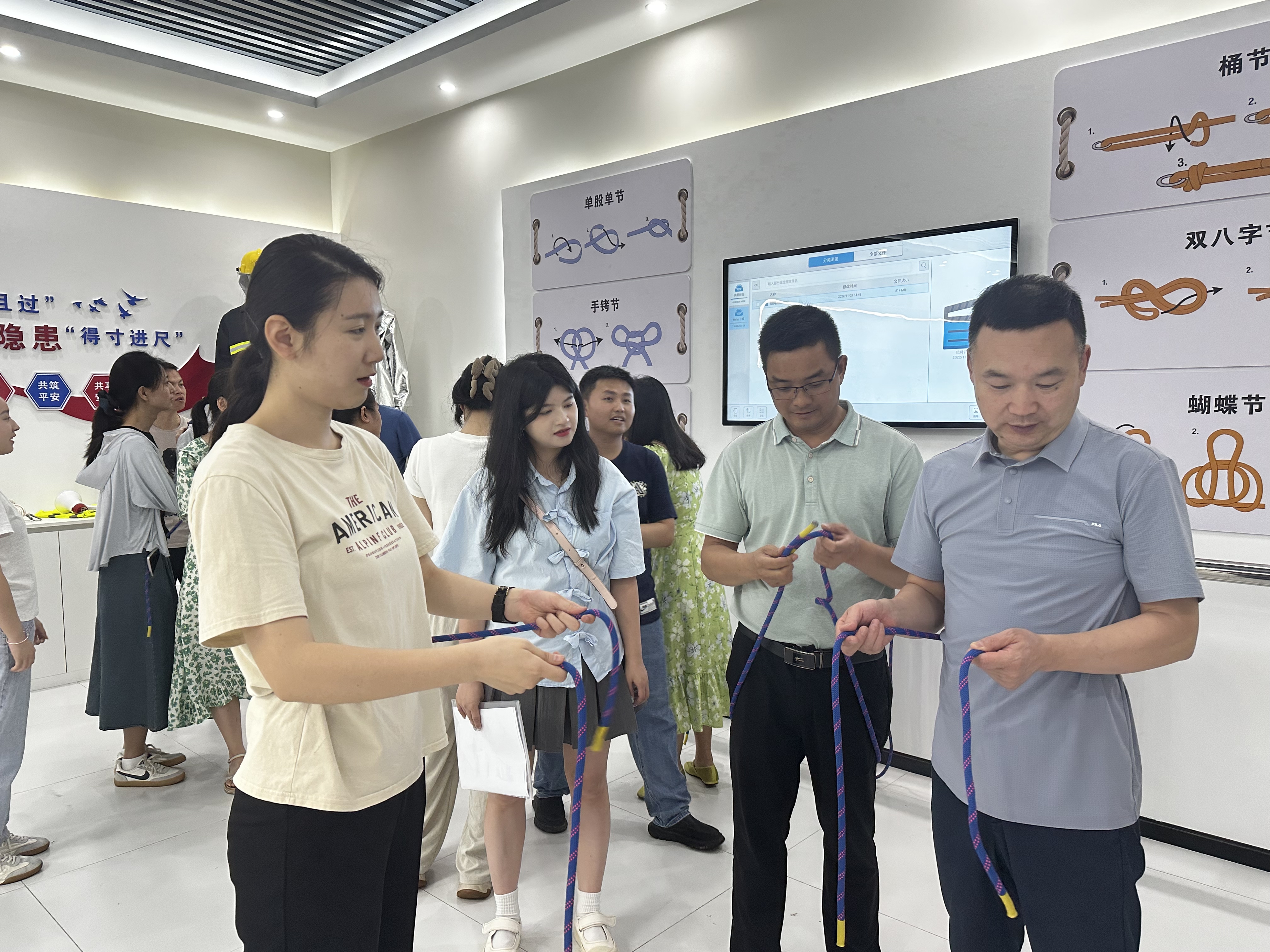 活动伊始,安全专业教师谭宇老师通过生动详实的展馆介绍与职业病发展历程讲解,为航发集团职工清晰勾勒出职业健康防护的演变脉络与重要性。在机械传动事故、触电事故等高风险作业模拟体验区,借助基地先进的仿真设备,职工们通过亲身体验深刻认识到违规操作的巨大危害,有效强化了“防患于未然”的底线思维。安全绳使用规范教学、正压式空气呼吸器佩戴实操、安全帽等个人防护用品的正确选用与检查演示等环节,则由安全专业教师孙银华老师、盖金梦老师进行标准化示范与一对一指导,确保每位参与者掌握守护自身安全的“金钟罩”。