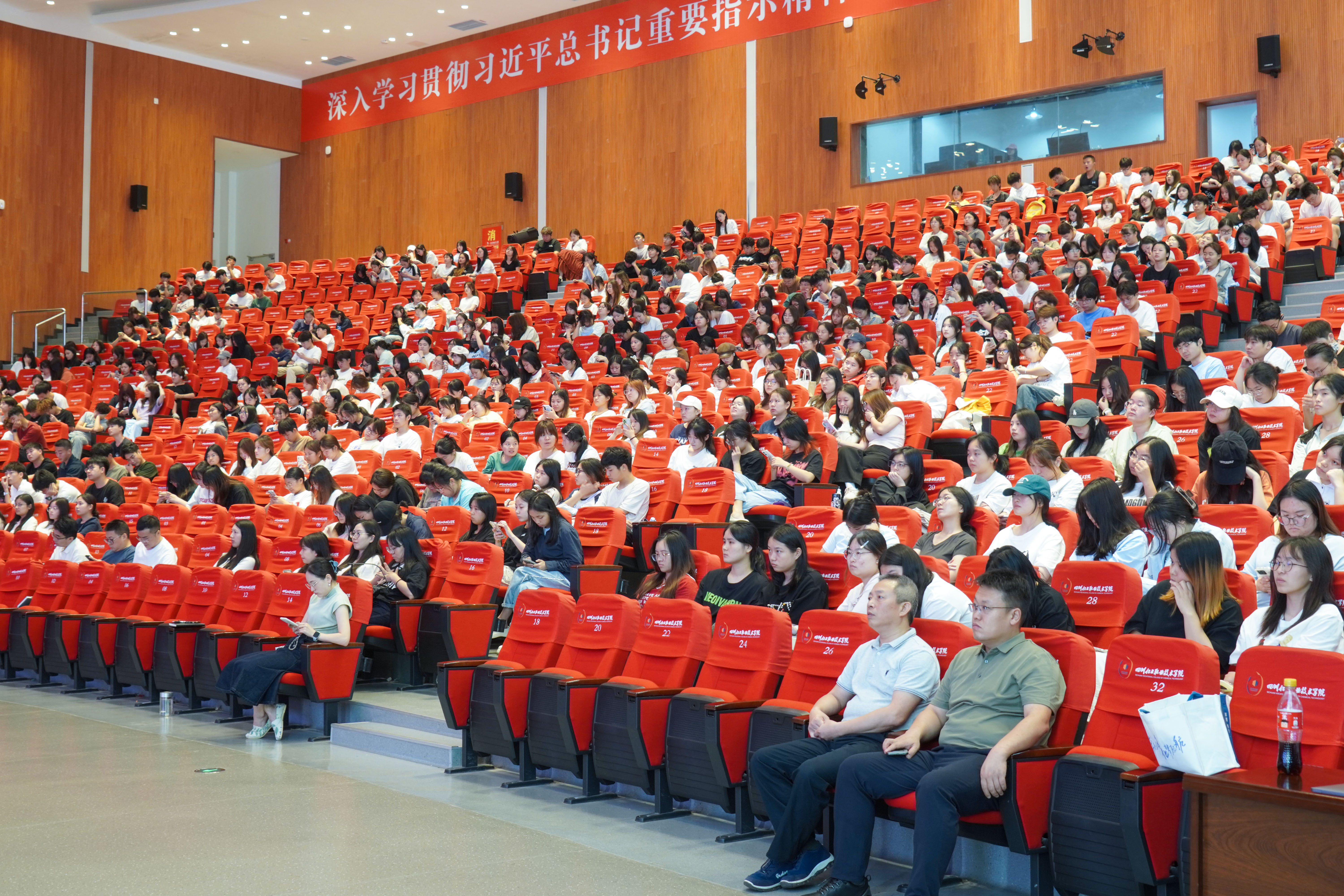 苏翔院长详细解读了《学校学生岗位实习管理规定》,重点说明实习任务、考核标准及校企双导师制度,要求学生按时提交实习日志,保质保量完成实践学习。同时,他重点强调了实习期间各个环节的安全注意事项,从实验操作规范、危化品管理、个人防护装备穿戴到交通安全、住宿安全等,进行了全方位的提醒和部署,要求同学们将“安全第一”的理念贯穿实习始终。陈林书记则针对“虚假就业”问题,明确其认定标准及处理办法,如伪造实习单位、虚报就业材料等行为将按校纪严肃处理,警示学生诚信实习、脚踏实地。陈林书记强调,诚信是立身之本,要求全体毕业生务必秉持诚信原则,脚踏实地完成实习任务,坚决抵制任何形式的弄虚作假行为。最后,教学科长黄国英老师就学生岗位实习离校手续办理流程进行了清晰、细致的说明。她逐一讲解了就业协议签订、安全责任书签订、离校系统登记等关键环节的操作步骤和时间节点,并提醒学生务必保持与校内指导教师及辅导员的密切联系,确保信息畅通,及时解决实习过程中遇到的问题,保障实习工作的顺利衔接和平稳运行。