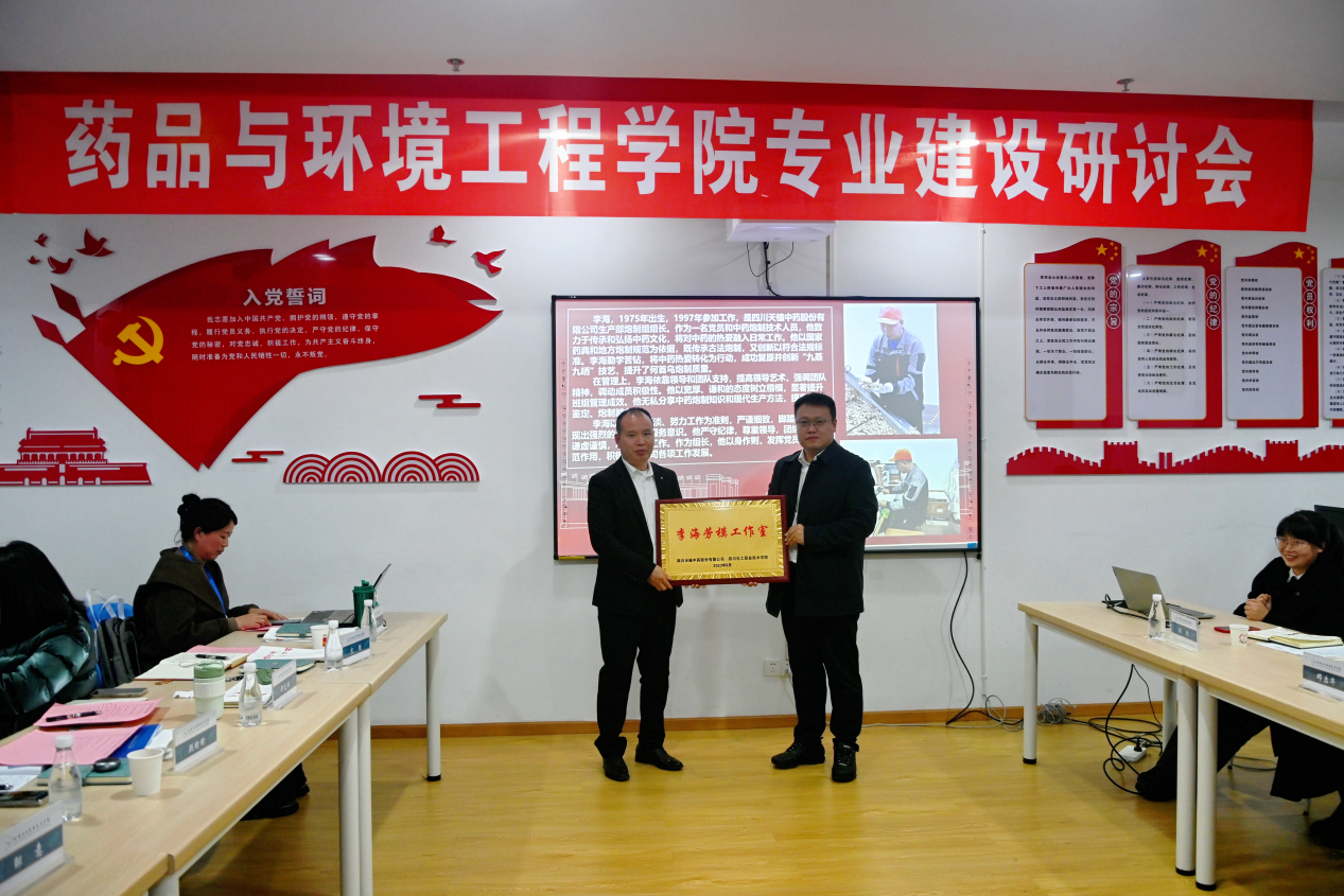 会议最后,药品与环境工程学院党总支书记张波为李海劳模工作室进行了授牌,张波书记、张欣院长、苏翔院长以及陈林书记分别为企业导师颁发聘书。