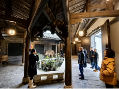 会后,我校教师及经科局代表一行在企业讲解员的带领下,参观了永兴诚大桥基地,详细了解了其古法酿造工艺流程,以优选黄豆为原料,经浸泡、蒸焖、接种、酿制等工序,经过三年的翻晒最后抽取的酱油以无色素添加,以酱味绵长、纯正柔和著称。