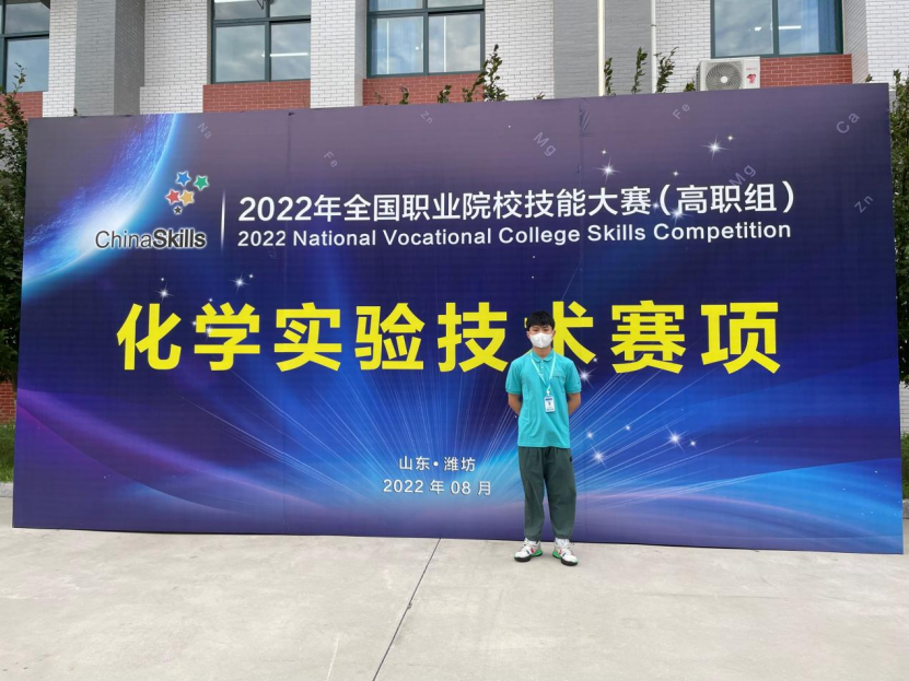 2022年全国职业院校技能大赛“化学实验技术”赛项(高职组)8月14日至17日在山东省潍坊职业学院举行, 我校药品与环境工程学院分析检验技术专业学生文常宇参加了此次比赛,并在高手如林的56位各省代表选手中脱颖而出,获得三等奖的好成绩。