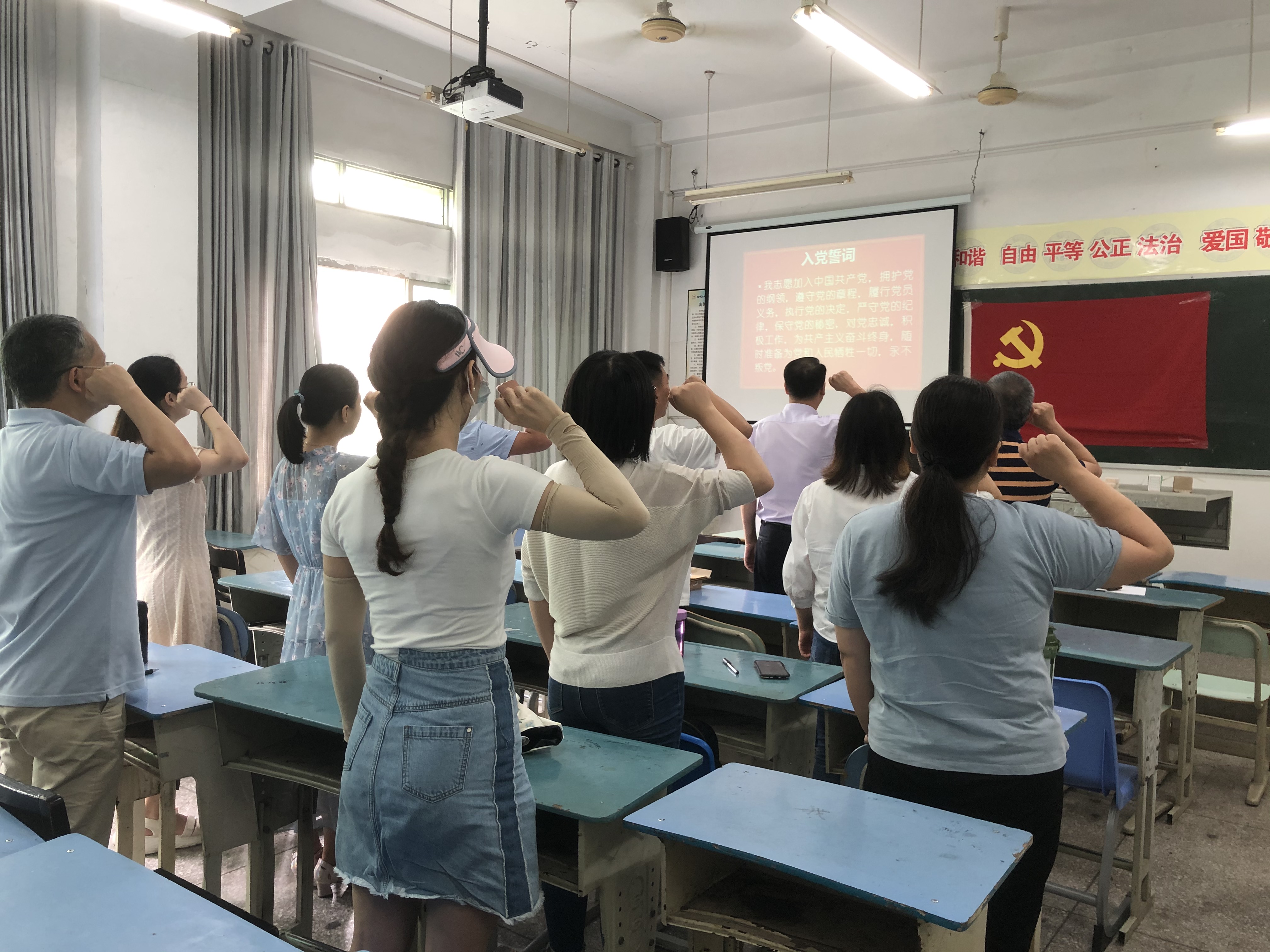 活动第二个环节是重温入党誓词,药品与环境工程学院党总支书记李光荣为领誓人。全体党员面对党旗,神情庄重、精神饱满,高举右拳,回顾建党历史,回望入党初心。参加活动的党员教师们都表示:再次重温入党誓词,仿佛又回到了入党时的神圣时刻,回想起了自己入党时的革命激情、奋斗热情和庄严承诺,内心充满了荣誉感和使命感。大家纷纷表示要不断提高责任感,加强党性修养锻炼,积极发挥表率作用,争做优秀党员教师,为学院的发展作出应有的贡献。