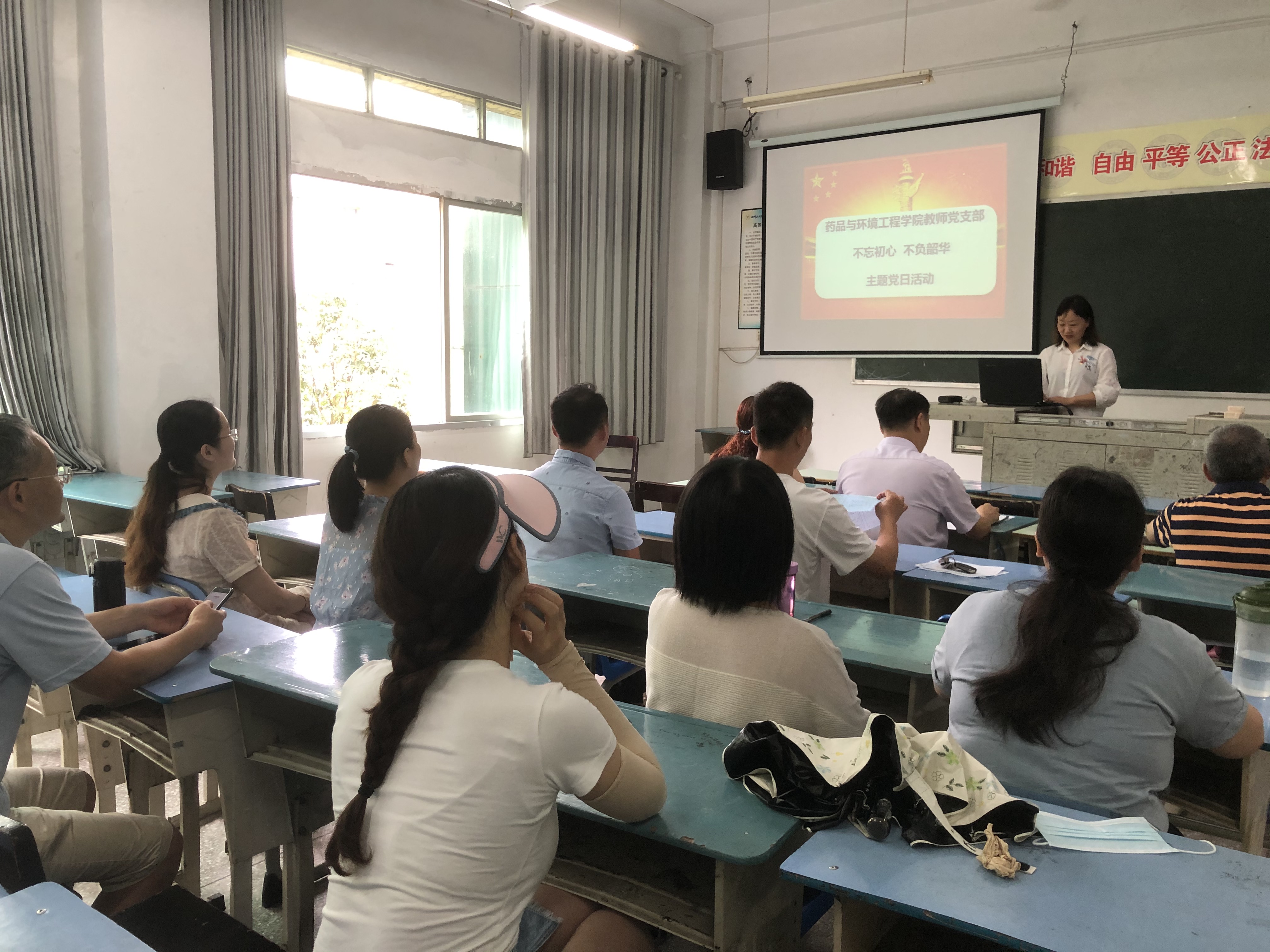 7月6日上午,药品与环境工程学院教师党支部开展了“不忘初心,不负韶华”主题党日活动。活动由党支部书记陈林主持。此次活动分为两个环节,观看主题宣传教育片和重温入党誓词。
