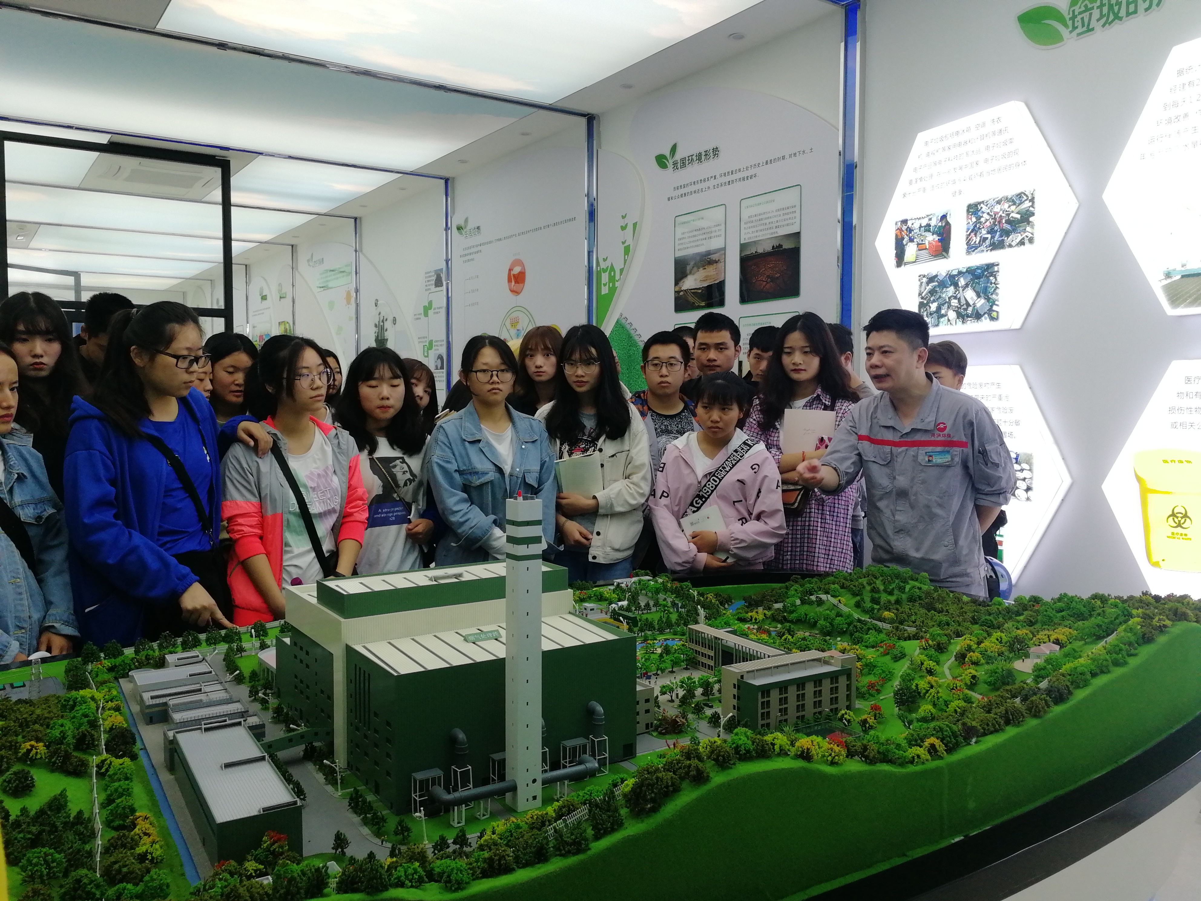 会后,在方经理的带领下,同学们对焚烧厂的展览馆、垃圾堆存库以及焚烧车间进行了实地参观,通过讲解、观摩以及小游戏,同学们对垃圾分类、处理以及渗滤液处理等有了深入了解,为今后的专业知识学习以及就业奠定了基础,同时也为环境专业建设和人才培养提供了详实的素材资源。