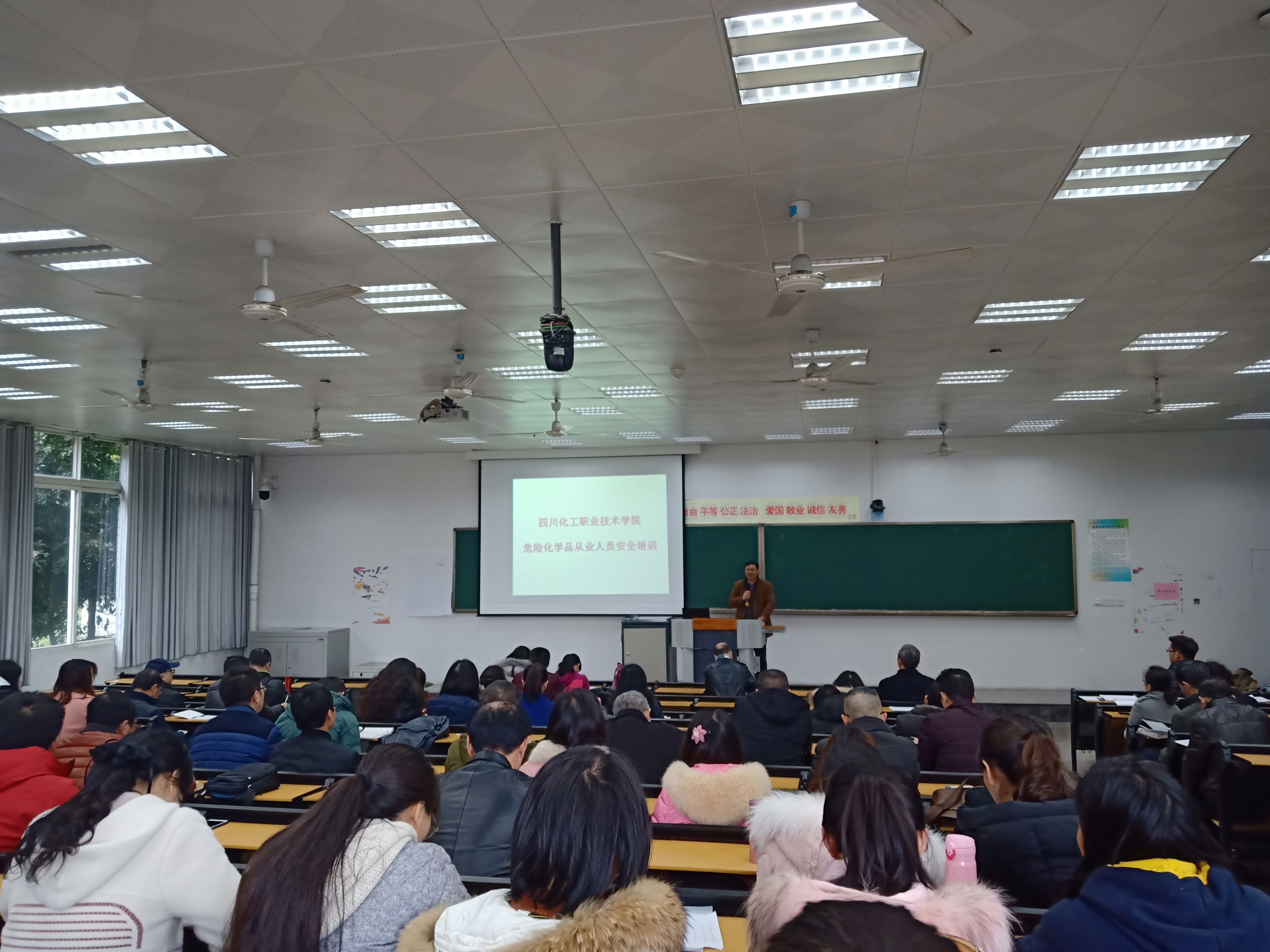 2月25日,学院安全培训中心对化工系、制环系涉及危险化学品教学及管理工作的教师进行危险化学品从业人员安全培训,此次培训为期一周。开班仪式在我院实A208举行,学院王志斌副院长亲临培训现场并作讲话,化工系、制环系所有领导和教师共计70余人参加培训。培训由制药与环境工程系副主任苏翔主持。