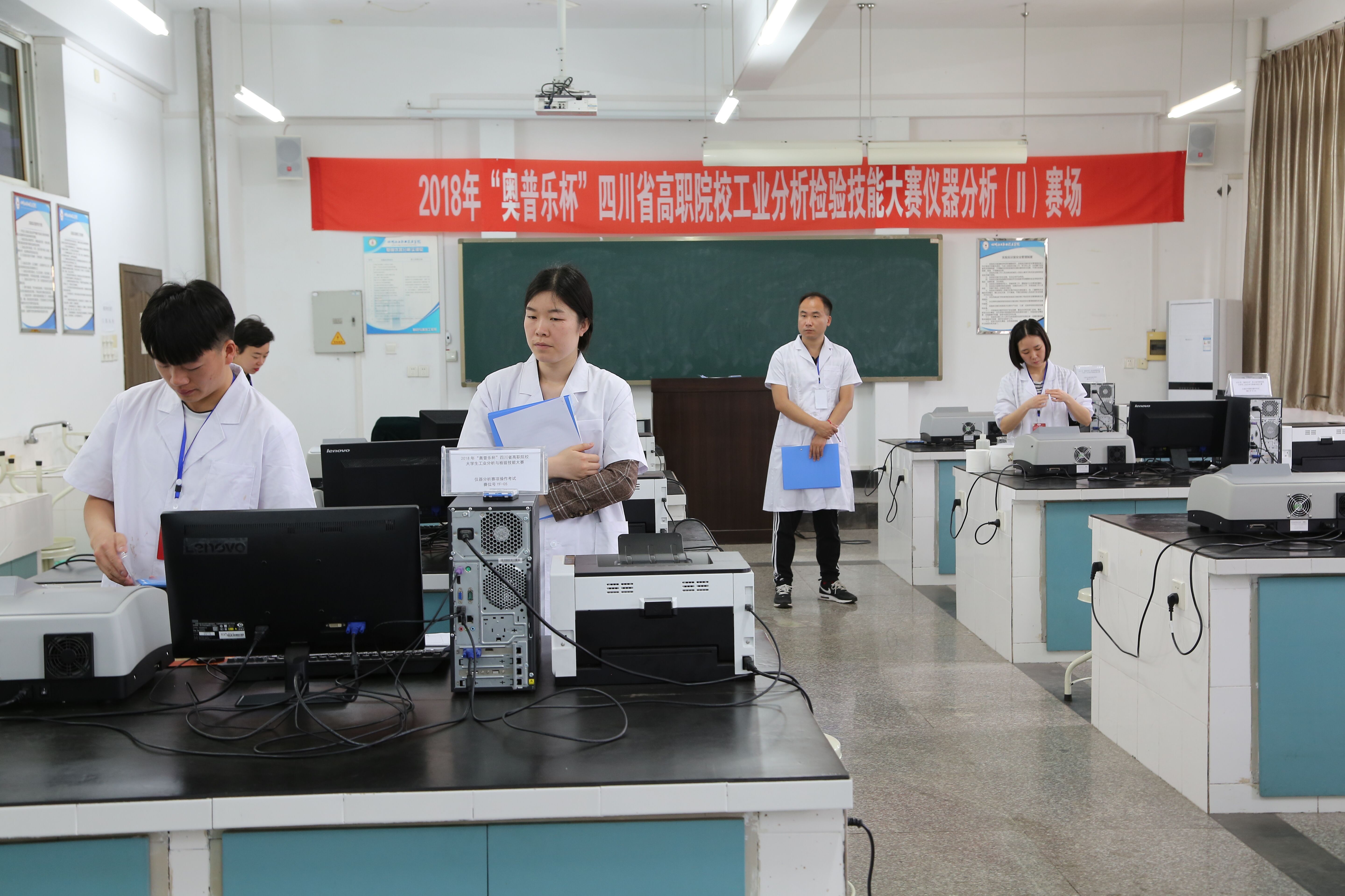第四届“奥普乐杯”四川省高职院校工业分析检验技能大赛,于2018年4月11日在我院如期隆重开赛。两天紧张有序的赛事于4月13日上午圆满落幕。本次大赛由四川省教育厅主办,我院联合成都奥普乐仪器有限公司共同承办。赛事包括“理论考核”、“化学分析”、“仪器分析”三项竞赛内容。来自7所院校的14名选手参加本次赛事。来自企业、参赛院校的裁判进行严格执裁,确保比赛公开、公正、公平。