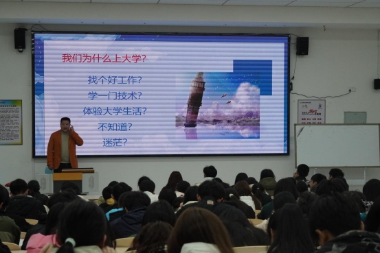 李大鹏老师分别围绕“为什么上大学”、“认知决定上限”、“如何融入丰富的校园生活”、“找到自己”四个方面进行阐述。他提出:机遇与努力同等重要,在今后的工作中,无论就业还是创业都要“精益求精做功,善始善终作为”。另外李大鹏老师通过多个方面为大一新生深入分析了创业的重要性,同时与之进行互动,十分轻松愉快。