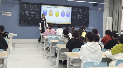 分析检验技术2232班权益委员吴显霞同学以PPT形式向同学们宣传《中华人民共和国消费者权益保护法》等法律法规,积极引导大学生依法维权;宣传维权途径和方式,以身边人、身边事为题材讲述网络诈骗过程,给同学们传授防诈骗知识;组织观看消费者权益宣传视频,拓宽同学们的消费维权知识,增强同学们的维权意识。