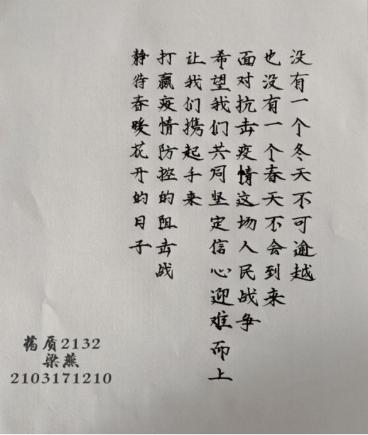 “金秋十月迎国庆,璀璨喜气耀大地”为庆祝伟大祖国七十三岁生日,喜迎二十大,致敬抗疫英雄。共青团药品与环境工程学院总支委员会宣传部组织开展“迎国庆·战疫情·同行动”主题书法、手工艺活动,共同庆祝国庆佳节!