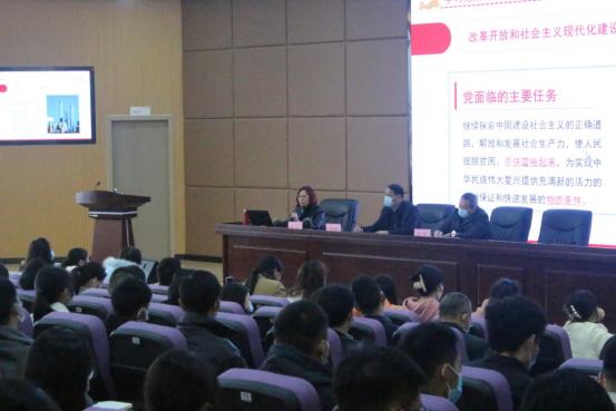 在师生交流讨论环节,四川化工职业技术学院药品与环境工程学院院长张欣深入浅出的讲解了大学生入党应树立正确的入党动机,始终保持清晰的入党目的:积极的向党组织靠拢,永远保持党员的先进性、模范性。并强调,作为当代大学生,我们要坚定“听党话,跟党走”的信心和决心,树立远大目标,坚定自己的理想信念,练就过硬本领,淬炼激昂斗志,加强品德修养,清醒地认识肩负的历史重任,清醒地认识难得的机遇和严峻的挑战,继承和发扬党的优良传统和作风,为社会主义建设做出自己的贡献。在新的征程上更加自觉地牢记初心使命,开创美好未来,勇担大任,拿起社会主义接班人的接力棒,担当起实现中华民族伟大复兴的重任。