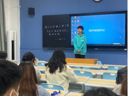 药品生产技术2131班的李欣同学,大胆提出自己对体育部的创新想法,介绍自己组织的本专业的羽毛球比赛,并表达了自己对部门的看法。