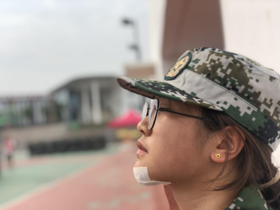 这么热的天能够带伤训练真是一件了不起的事情,她不仅要面对军训时候的热和累,还要忍受伤口的疼痛,这种不怕苦、不怕累、坚忍不拔的精神才是军训的真谛。这种精神更值得我们每一位同学学习。