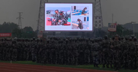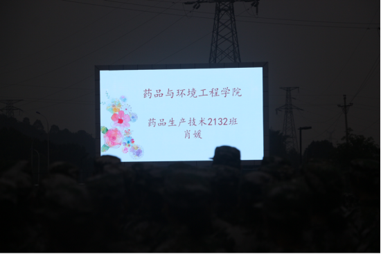 2021年9月15日18:30,四川化工职业技术学院新操场上,军训教官当众表扬药品与环境工程学院药品生产技术2132班肖媛同学。
