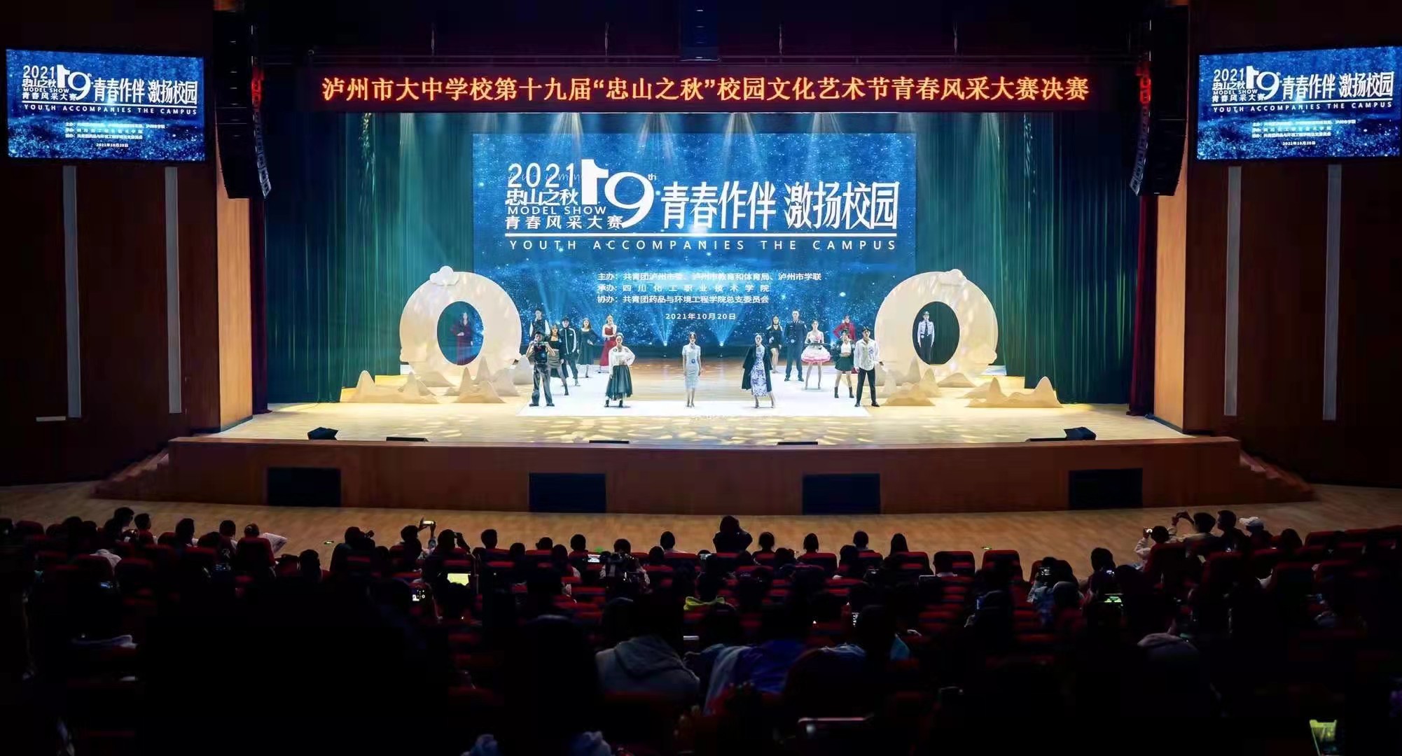 2021年10月20日14:30,泸州市大中学校第十九届“忠山之秋”校园文化艺术节青春风采大赛在四川化工职业技术学院博雅礼堂如期开赛。