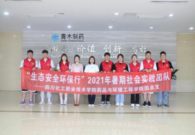 目前我国经济高速发展,社会竞争越来越激烈,市场对人才的需求逐年发生变化,对人才综合素质要求越来越高,为充分了解大学生目前的就业情形以及企业对于人才的需求,2021年7月12日,药品与环境工程学院“生态安全环保行”2021年暑期社会实践团队在药品与环境工程学院团总支书记苏双双,学生科长蒋朝英两位老师的带领8位相关专业同学来到了位于眉山的四川青木制药有限公司进行了实地调研。