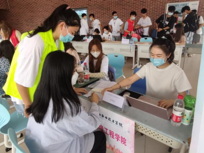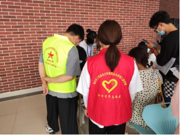 晨光熹微,初秋凉风拂面,新的校区里处处挂满了欢迎同学们的条幅标语,表达了学校对新生的热烈欢迎。校园里到处可见的药品与环境工程学院“红马甲”红日志愿者,“绿马甲”青马班学员们忙的不亦乐乎,他们活跃在人群中,分工明确、有条不紊地迎接着新生。在烈日骄阳下,志愿者们热心的为新生指引道路,替他们搬运行李,给他们耐心讲解入学手续办理细节以及安全须知,引导他们到2021级辅导员处登记相关信息,展现出了志愿者文明有礼、热情争先的良好形象。