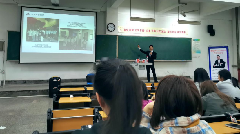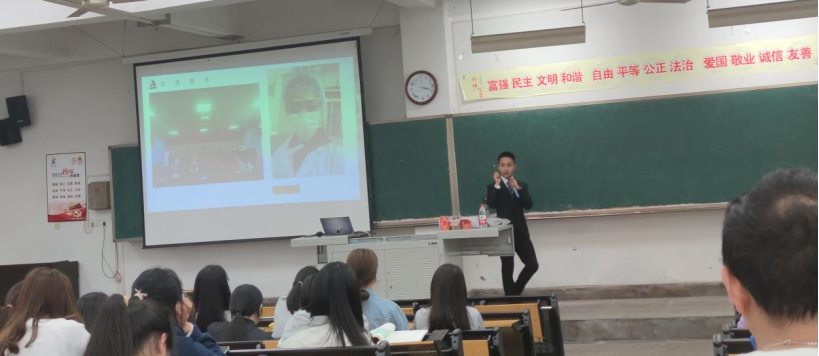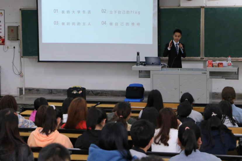 18级环境工程专业的李昊学长向同学们分享了他的四川化工职业技术学院学习生活心得,他向同学们介绍了“五拒绝,五养成”学习生活经验,向同学们推荐参加适用的培训课程、有益的社团及志愿者活动,以锻炼提高自身修为。还向大家分享如何对待学习、如何看待生活、如何跨过障碍、如何打破瓶颈的问题。以自身经历结合学校实际,向同学们生动讲解当代青年应该具备的拼搏精神。