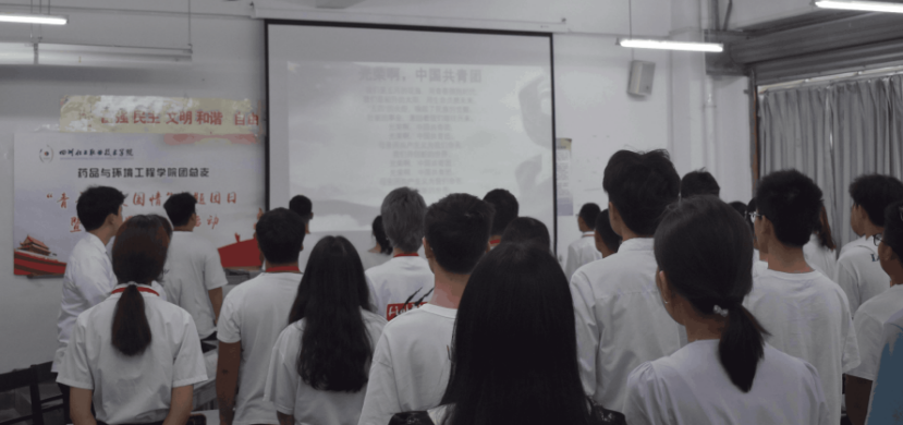 药品与环境工程学院团总支书记苏双双,学生副书记杨凤,学生会执行主席冯志、刘源源,团总支、学生会各部门部长、负责人、成员,19级、20级团支部书记共同学习党史,交流分享团员青年的理想、信念、追求,在学习工作中应当遵守的纪律进行了深入的探讨交流。活动由药品生产技术2032班彭涛和环境工程技术2032班彭艳主持。