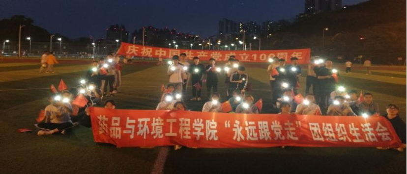 最后,环境工程技术2032班全体同学积极配合摆出数字“100”,点亮手机电筒,庆祝中国共产党成立100周年,祝愿我们的党生日快乐。班内少数民族同胞(彝族、藏族、羌族、纳西族)用自己的母语说着“庆祝中国共产党成立100周年”、“我们要永远跟党走”等祝福语。