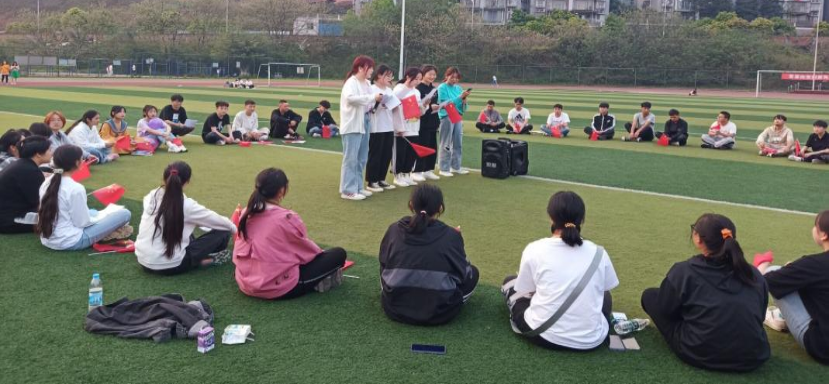 环境工程技术2032班团支部全体同学在操场开展了一次精彩的团组织生活,团总支书记苏双双老师参加指导活动。活动主持人田鸿同学问到:为什么我们要跟着中国共产党走?环境工程技术2032班班长陈亚婷同学抢答道:因为中国共产党的宗旨是全心全意为人民服务,为人民谋幸福,为民族谋复兴,所以我们要坚持中国共产党的领导,永远跟党走。