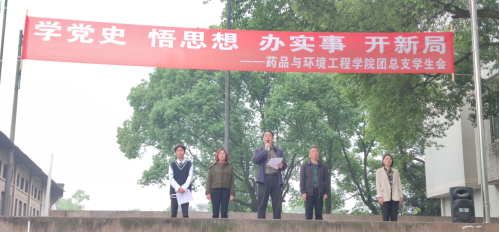 2021年4月12日7:20,药品与环境工程学院在学校小操场开展了“学党史,悟思想,办实事,开新局”主题升旗仪式。参加此次升旗仪式的领导有学院党总支书记李光荣、院长张欣、副院长苏翔,全体专兼职辅导员和全院学生。