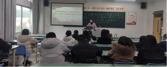 药品与环境工程学院学生党支部于2020年12月23日15:00在综合楼A区503教室开展了学习贯彻党的十九届五中全会、省委十一届八次精神主题党日活动,参加此次活动的有19名在校预备党员,会议由学生党支部书记苏双双同志主持。
