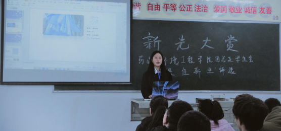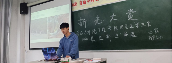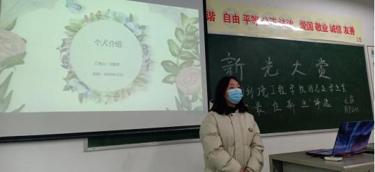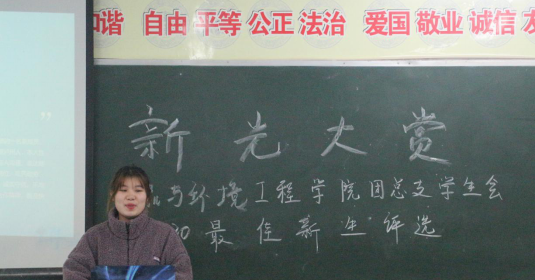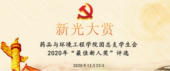 为进一步加强我院团总支学生会成员思想道德建设,推动工作的进一步开展。2020年12月23日16点,药品与环境工程学院团总支学生会在综A503教室开展了“新光大赏”药品与环境工程学院团总支学生会2020年“最佳新人奖”评选。评委是:药品与环境工程学院团总支书记苏双双老师、副书记杨凤同学、执行主席冯志同学、副主席刘源源同学。