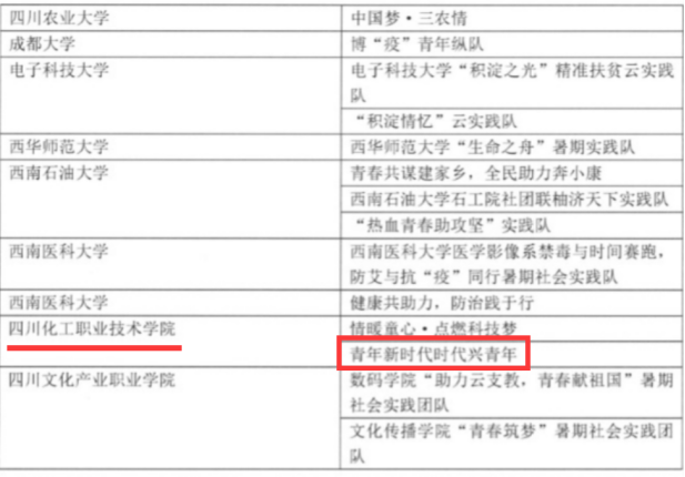 我校药品与环境工程学院团总支暑期社会实践团队“青年新时代 时代兴青年”助力脱贫项目荣获“最美团队”称号。全国仅300个团队入选,四川省仅9个高校获此荣誉。