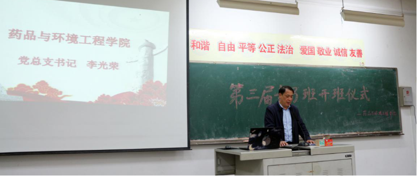 此次开班仪式进一步加深了药品与环境工程学院同学们对马克思主义的认识,增强了同学们的服务意识和责任意识,为践行中国特色社会主义合格接班人而奋发前行。