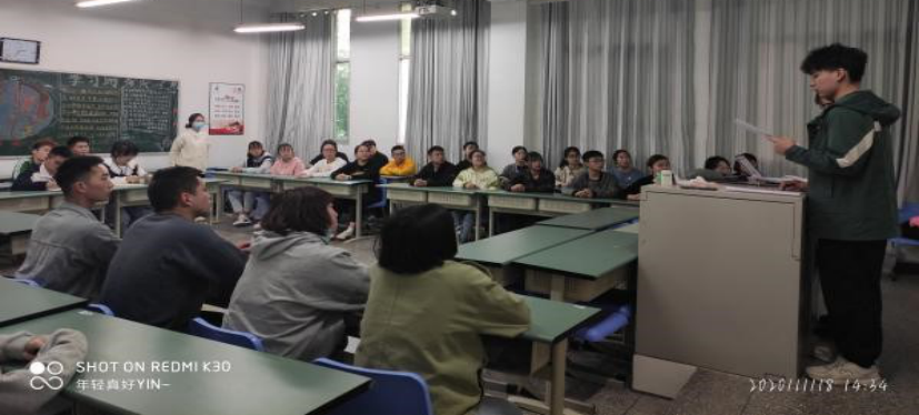 工业分析技术2031班团支部前期集思广益,团组织生活开展方式新颖,有同学以相声形式诠释党的十九届五中全会精神,生动有趣,同学们全神贯注听讲,并积极参与知识问答环节。