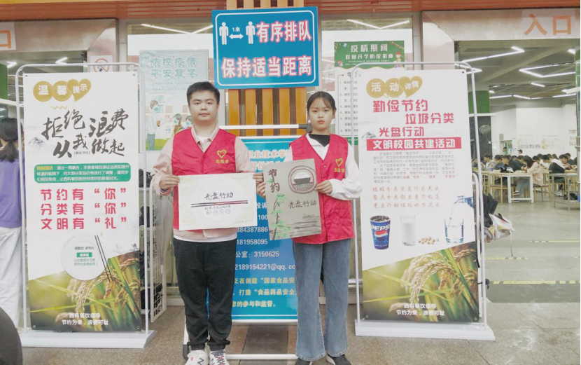 为大力弘扬勤俭节约的传统美德,培育节约型校园文化建设优良学风,强化大学生勤俭节约意识,树立健康节能观念,营造良好就餐习惯。药品与环境工程学院团总支于2020年9月21日开展“节约粮食,光盘行动”倡议活动。让我们从现在做起,不剩饭、不浪费,用实际行动参与到节约粮食的行动中来,争做节俭生活的践行者、推广者、监督者,让节约引领风尚,共同为建设文明、和谐、环保的社会环境作出应有的贡献!