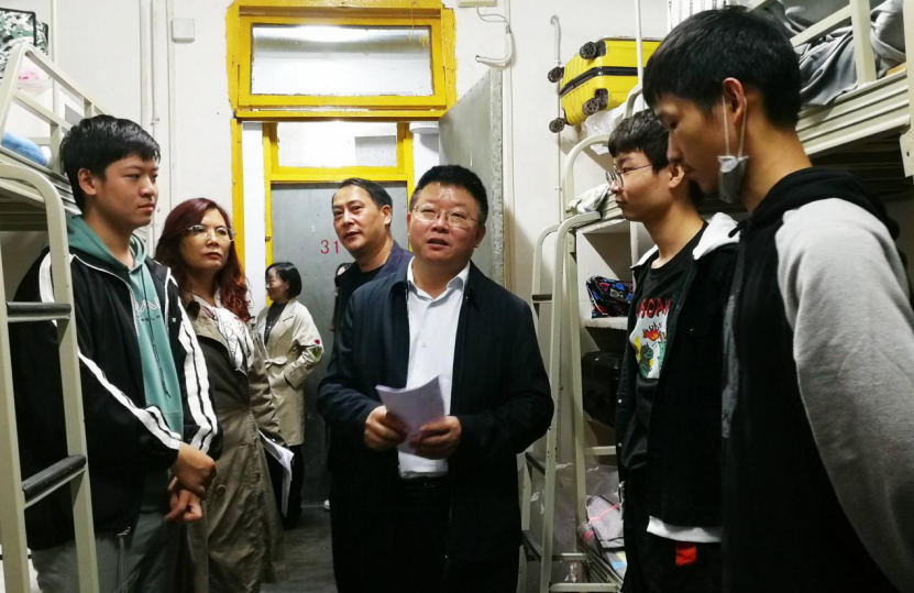 为帮助2020级新生尽快适应新的学习生活环境,了解同学们的需求,解决实际问题,让新生感受到学校对他们的关心。2020年10月11日18:00由四川化工职业技术学院文申柳副院长带队,学生处苏坤副处长,药品与环境工程学院党总支李光荣书记、张欣院长、苏翔副院长、李克嵘副院长、全体专兼职辅导员、专业负责教师下寝室走访慰问2020级新生。