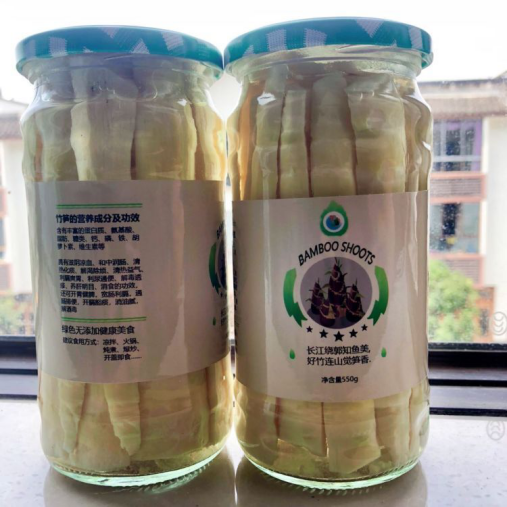 经多次实地探访后,我们了解到当地人为了保存竹笋这份美味,利用当地山泉水、竹柴,将竹笋密封在玻璃罐内高温蒸馏,制成竹笋罐头,据了解此方法可保存3年及以上,且丝毫不影响竹笋的营养价值和鲜甜爽脆的口感。其还有“无添加”、“纯天然绿色有机”的优点。