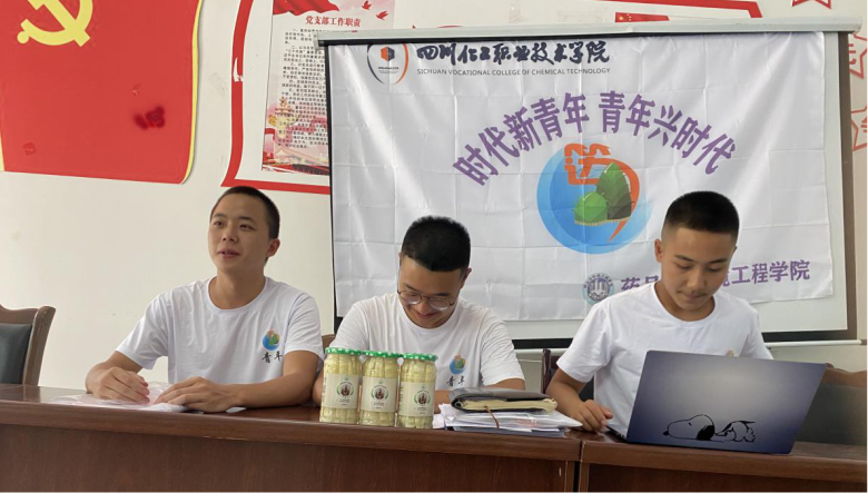 2020年8月药品环境工程学院团总支暑期社会实践团队在四川省乐山市峨边彝族自治县开展“打造乡村特色产业,助推乡村振兴”活动。将峨边县五渡镇大村和胜利村的特色“灌装竹笋”打造成产品形成乡村特色产业,助力当地脱贫攻坚。团队由药品环境工程学院团总支书记苏双双老师,环境工程技术1831班李昊、王珈琪、吴定兴、黄国文、果基金古,数字媒体1933班杨珺滟,市场营销1832班赵余婷,电子商务1832班艾光秀9人组成。