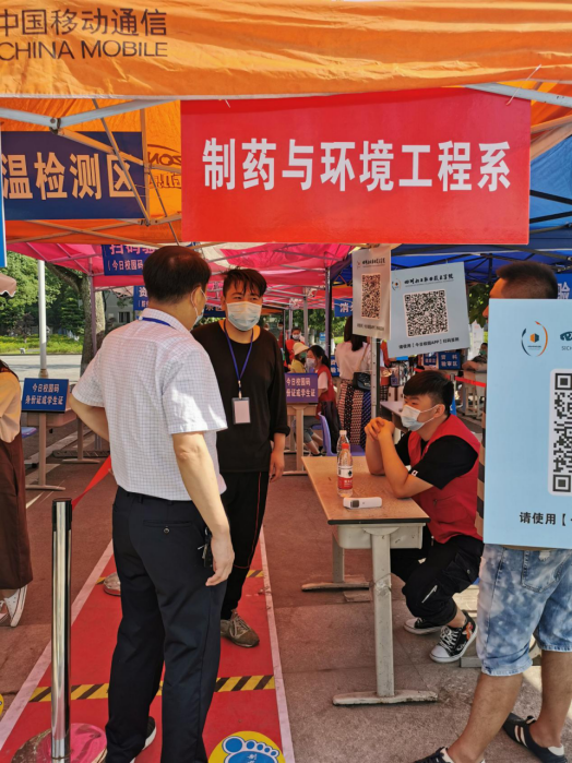 制药与环境工程系的学子们接收到官方消息后,无不感到欣喜。这代表着长达四个月的“寒假”终于结束了。制药与环境工程系志愿者同学于5月18日9点左右到达学院,并积极开展服务工作。同样是开学新气象和往年最大的不同就是大家带上了口罩,入校时都有序排队接受健康检查。在报到的时候,大家都自觉遵守规定,每人间隔一米的距离有序的进入校园。进入校门的同学们都按照一检、二扫、三验、四消再设立临时观察点的流程走。