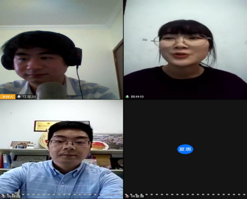 药品生产技术1933班韩林伶同学发言说:在这次抗击疫情阻击战中,我们90后00后在担当中大写青春,我们用青春担起了抗疫重任,努力奉献自己的力量,护好国家和人民。