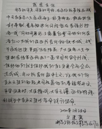 药品生产技术1733班预备党员文建勇用融入感情的文笔描述了《感恩有你》。都说英雄无怨无悔,因为在祖国和人民需要的时候总要有人挺身而出;常说英雄有情有泪,因为在国和家的抉择之间总要有人坚定从容。致敬抗击疫情中逝去的英雄,你们,为了守护我们,不计报酬,不畏生死,以血肉之躯与病魔斗争,你们永远值得我们铭记。表现了同学们对大疫逆行英雄的敬意和崇敬!