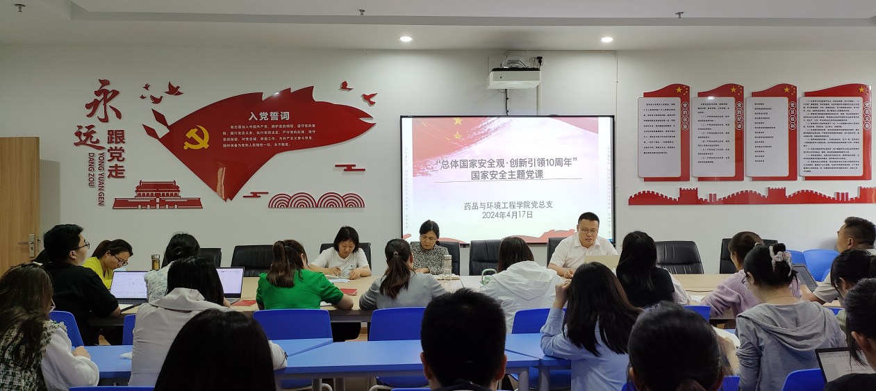 国以安为兴,民以安为乐,国家安全是民族复兴的根基。2024年是习近平总书记提出总体国家安全观10周年,为深入贯彻习近平总书记关于加强国家安全教育的重要指示批示精神,扎实推进国家安全宣传教育工作,牢固树立总体国家安全观,切实增强我院全体教师关心国家安全、维护国家安全的思想共识和行动自觉。2024年4月17日,药品与环境工程学院党总支在综合办公楼230开展“总体国家安全观 创新引领十周年”主题微党课,由党总支书记张波同志主讲,学院全体教师参加。