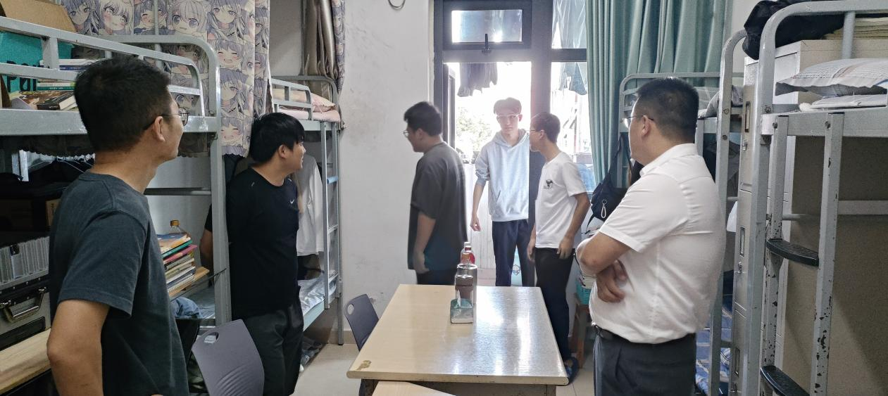 参观完专业实验实训室后,学院党总支书记张波、院长张欣、副书记陈林带领各党小组、教研室成员深入辅导员工作室与学生宿舍走访交流,与师生面对面听意见、问需求、解难题。张波书记、张欣院长和陈林书记参观了4栋辅导员办公室,了解辅导员办公条件,关心辅导员的工作情况与困难需求。随后,张书记和陈书记分别带队走访学生寝室,与学生进行亲切交谈,深入了解学生的思想动态、学习生活情况、实习就业情况、寝室卫生以及安全问题,询问同学们对于学院教学工作、学生管理和服务保障等方面的想法和意见,了解同学们在学习、生活中所遇到的问题、困难及所思所想所盼。同学们踊跃发言,提出个人在学习和生活以及就业等方面的困惑,同时对学院发展提出了意见和建议。随行老师有针对性地解答同学们所提出的问题,并表示对暂时无法解决的问题,将及时梳理反馈给学校相关部门。在走访过程中,对学生寝室的消防隐患、电路电线以及其他硬件设施进行了排查。同时,叮嘱同学们要严格遵守校纪校规,切勿在寝室内使用违规电器,保持良好的作息和个人卫生习惯,共同打造舒适、安全的居住环境,全方位筑牢校园安全防线。