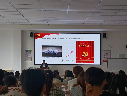 2023年4月24日中午,药品与环境工程学院党总支书记张波在11A105教室为预备党员、入党积极分子上党课,深入学习贯彻党的二十大精神。