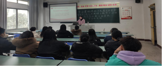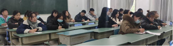 药品与环境工程学院学生党支部于2020年12月23日15:00在综合楼A区503教室开展了学习贯彻党的十九届五中全会、省委十一届八次精神主题党日活动,参加此次活动的有19名在校预备党员,会议由学生党支部书记苏双双同志主持。